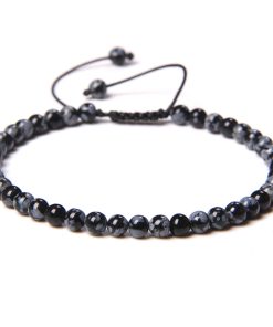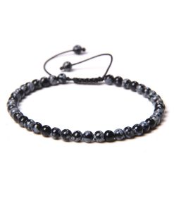 Entretien du bracelet Obsidienne neige en perles de 4mm avec cordon ajustable