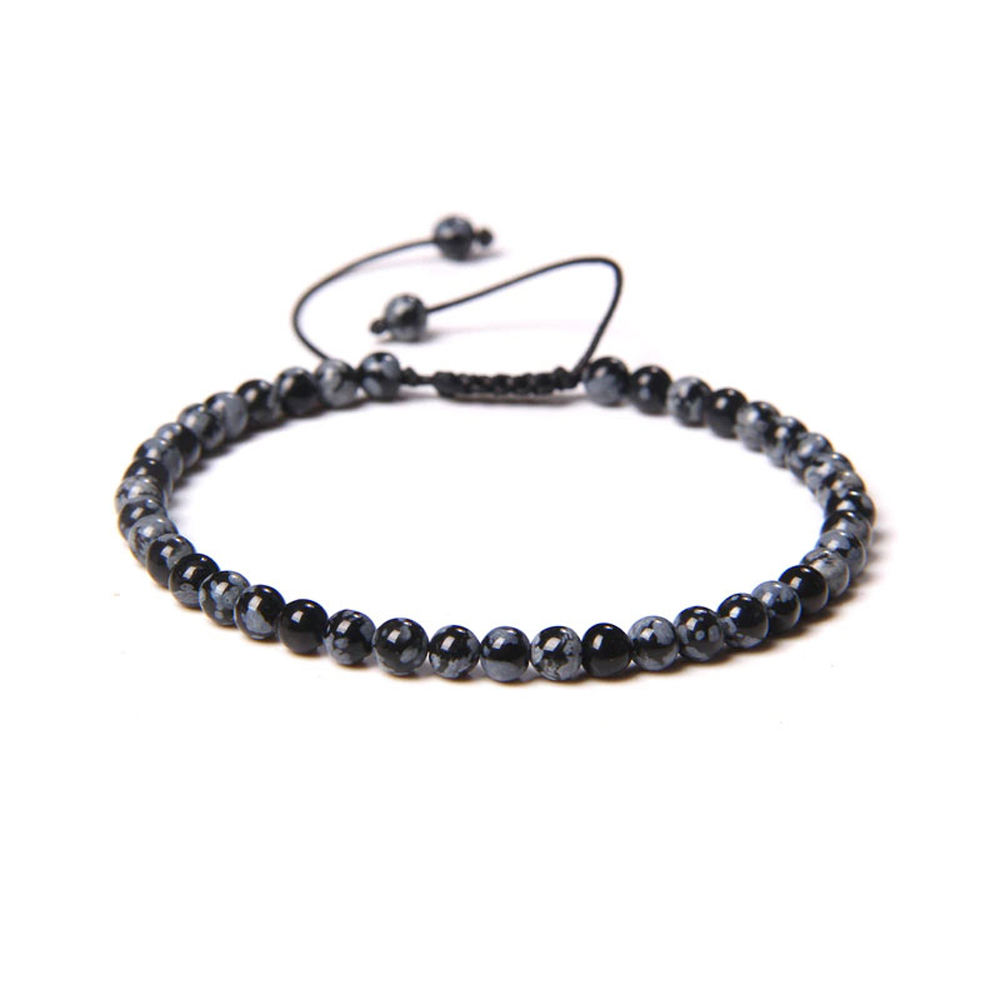 Bracelet Obsidienne neige avec perles de 4mm et cordon ajustable